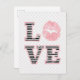 Este design apresenta um conjunto pastel de lábios e AMOR em um padrão listrado preto e branco.