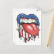 Bandeira americana pintada em lábios. A boca tem presas e uma língua grande. Para o patriota e amante da fantasia.