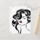 Tema brilhante, feminino vintage em preto e branco. Uma bela mulher com lábios vermelhos e cabelo encaracolado. Divertido, retro desenho.