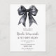 Convite de festa de aniversário bonito cartão postal com laço coquete preto. As palavras podem ser alteradas para atender aos seus próprios detalhes ou requisitos