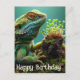 Cartão Postal Lagarto no Jardim de Musgo Feliz Aniversário
