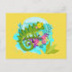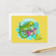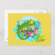 Cartão Postal Lagarto tropical verde com flores