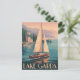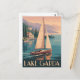 Experimente a beleza tranquila do lago Garda ao pôr do sol com este cartão-postal com um gracioso barco à vela que atravessa águas calmas. As tonalidades quentes do sol de regulação refletem na superfície do lago, enquadradas por montanhas majestosas à distância. Perfeito para amantes de paisagens serenas, cenas náuticas e arte clássica de viagem.