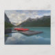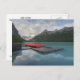A famosa canoa vermelha no lago Louise no Banff National Park, Alberta Canada.