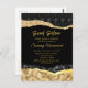 Este convite de aniversário sweet sixteen elegante e glamoroso apresenta lágrimas glam de brilho falso preto e dourado em um fundo preto. O texto combina fonte manuscrita e fontes sans serif modernas para um visual sofisticado e elegante.