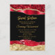 Este convite de aniversário sweet sixteen elegante e glamoroso apresenta lágrimas glamour falsas vermelhas e douradas em um fundo preto. O texto combina fontes manuscritas e modernas sem serifa para um visual sofisticado e elegante.
