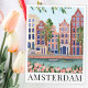 Cartão postal com a ilustração de uma bela cidade ao lado do lago, em Amesterdã.