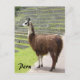 Foto do cartão-postal de uma lama em Machu Picchu, no Peru.
