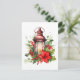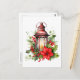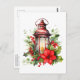 Cartão Postal Lanterna de Natal Vermelho Poinsettia e Pinheiro