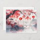 Cartão Postal Lanternas de Aquarela Chinesas e Árvores Brilhante