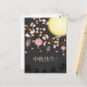 design do Festival de outono de médio com uma árvore florida e lanternas rosa e roxas. Lua de cheio sobre fundo escuro. Texto: Feliz Festival de Médios!" é personalizável.