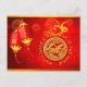 Cartão Postal Lanterns Dourados Vermelhos Cavalos Chineses recor
