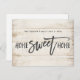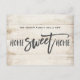 Este cartão-postal apresenta um fundo de madeira rústico com letras de pincel na frente dizendo "Home Sweet Home". Use o formulário modelo para adicionar seu texto personalizado à frente e atrás da placa. Use a opção Personalizar mais para adicionar alterar a fonte e as cores ou adicionar texto adicional.