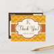 Elegante Obrigado em amarelo-ouro giro, laranja queimado, listras modernas castanhas com fonte marrom. Excelente para Casamento, festa de noivado, chá casal e chá de panela, obrigado. Personalizado com o nome e monograma da noiva e noiva.