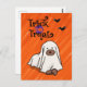 Entra no espírito assustador com este cartão postal de Trick laranja ou Tratar Halloween! Apresentando um cão fantasma, mini fantasma, e morcegos, este cartão postal é perfeito para bruxas, magos, e qualquer um que ame vibrações mágicas. 🎃 🧙 este cartão postal de Halloween inspirado pelas bruxas faz a escolha perfeita para amantes, amigos ou família de Halloween que desfrutam de um toque de magia e malícia! O texto é totalmente personalizável - você pode adicionar, editar ou remover palavras para ajustado em qualquer ocasião. ➤ Descubra Apenas as Coisas do Japão também - Da vintage à moderna, uma loja que celebra designs estéticos japoneses para os itens do dia a dia. [https://www.zazzle.com/store/justjapanthings/products]