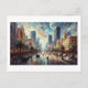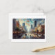 Uma rua urbana movimentada em Las Vegas é representada, agitada com pessoas e veículos em meio a arranha-céus altos e edifícios icônicos. Palmeiras cruzam a rua sob um céu vibrante e colorido.