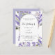 Cartão Postal Lavanda, arca floral, roteiro branco, casamento co