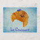 Croissant francês bonito. Este é Croissant francês clássico mas nao usual. Hetero fresco e friável da padaria francesa de Paris. Mas quando você vê seus bigodes do sorriso e do rico com boina azul, você sabe simplesmente que é francês típico. O Croissant bonito de Kawaii é o melhor design para todo o fã do pequeno almoço francês.