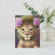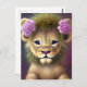 Cartão Postal Leão-Bebê-Cute com Flores Rosa Gráfico
