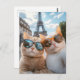 Dois gatos na moda posam em frente à Torre Eiffel, balançando óculos escuros e capturando o supremo viagem num dia ensolarado em Paris.