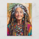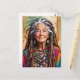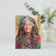 Mantenha contato com um amigo ou membro da família com este cartão postal divertido com uma ilustração ai de uma jovem hippie legal em cadeados temerários com fundo de corante de gravata. Cores vibrantes, ilustração artística única de sua velha senhora cotidiana.