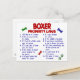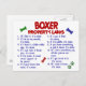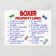 Crie uma gargalhada, ou duas, com nossos presentes, t-shirts, roupa e artigos engraçados das Leis de Propriedades Boxer, com texto divertido de cor primária e uma dispersão de ossos. Estas regras humorísticas, e tão verdadeiras, são certamente um sucesso para qualquer dono do Boxer e fazem um presente ideal para aquele amante do Boxer duro-a-comprar na sua lista!