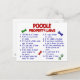 Crie uma gargalhada, ou duas, com nossos humorísticos presentes, camisetas, camisetas, roupas e mercadorias da Lei de Propriedade Poodle. Essas engraçadas, e é verdade, as regras dos cachorros são um sucesso para qualquer Poodle Owner. Faz uma ideia ideal para aquele duro-a-pegar para o Poodle Lover na sua lista!