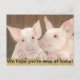 Um retrato a lápis colorido de dois adoráveis leitõezinhos muito rosados adorna este cartão postal divertido! Personalize alterando o texto para se adequar a você!