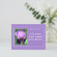 Adicione o nome da sua clínica de optometria ou optometrista a este cartão postal de Eye Exam Reminder personalizável com uma bela Íris roxa e lavanda.