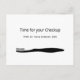Um cartão de visita de aviso profissional de compromisso dentário em preto e branco com uma simples design de escova de dentes.