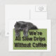 Um gato preguiçoso tombou as palavras Somos Todos Lentos Sem Café.