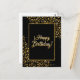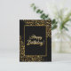 Convite de Aniversário Leopardo Jóias e Ouro Preto. Design com brilho dourado falso e jóias. Perfeito para uma celebração elegante e glamorosa. A fonte Feliz Aniversário está incrustada com diamantes. Com este convite lindo você pode usar e mudar para qualquer aniversário, despedida de solteira, quinceañero, etc. apenas mudando as informações de exemplo.