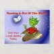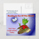uma alienígena de espaço verde divertida e engraçada é incluída nesta design de cartão de promocional da biblioteca. Uma espaçonave de ouro brilhante e um fundo azul-estrela divertido completam a imagem. Personalize adicionando detalhes sobre os programas de leitura da biblioteca, eventos especiais, horas de operação ou qualquer outra coisa que você possa pensar. Ferramenta de promocional de excelente para a sua biblioteca. Aproveite a leitura!