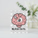 Já teve um daqueles dias em que seu cérebro dói? A causa de sua dor de cabeça que vai do muito para aprender na escola, muito para fazer no trabalho, ou muito caos em sua vida? Bem, então este será o design perfeito para você! Este cérebro cor-de-rosa com banda na cabeça também teve um dia difícil. Leve-o para casa e comece a aliviar seu estresse. Um presente de excelente para a consciência de lesões cerebrais, médicos e neurologistas.