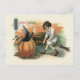 Cartão Postal Letra Black Cat Pumpkin Witch's Hat Broom