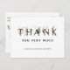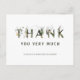 Esta obrigado de casamento que você usa com cartões postais com cor d'água, letras verdes de folhagem tropical com sotaques de folhas de ouro falsas. Perfeito para casamentos, aniversários, graduações e outros eventos. >>> Veja a coleção inteira >> https://www.zazzle.com/collections/tropical_foliage_green_collection-119021829937676776