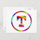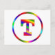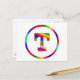Um monograma colorido com a letra T no arco-íris colorido dentro de um círculo arco-íris. Compartilhe o seu orgulho do seu nome com um T inicial alegre e divertido.
