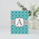 Cartão Postal Letra Teal Azul Monograma A Quatrefoil