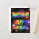 Este design do cartão-postal apresenta as mensagens "2024" e "FELIZ ANO NOVO!" na frente, com letras coloridas gradiente do espectro arco-íris, juntamente com um padrão inspirado em fogos de artifício que explodiram. A parte traseira apresenta uma mensagem personalizável.