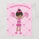 Este cartão postal de aniversário personalizado e alegre com tema de líder de torcida apresenta um desenho de uma bonita liderança de torcida afro-americana em um uniforme de líder de torcida segurando pompons rosa. Personalize este cartão postal de aniversário infantil com o nome de uma menina negra entre o divertido padrão de coração.