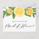 Você será minha madrinha de casamento? Convide a família e os amigos para fazerem parte do vosso casamento com este cartão de pedido de festas cítricas. Apresenta ilustrações de aquarelas de limões, laranjas e verde. Personalize adicionando nomes e mensagens. Este cartão de madrinha de casamento de limão é perfeito para casamentos de verão.