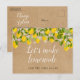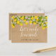 Este cartão de mudança de data divertido e rústico de limões pode ser personalizado com as informações do adiamento. O verso tem detalhes adicionais, incluindo o seu site, com o seu endereço de retorno e espaço para o endereço do destinatário. Perfeito para casamentos, chá de noiva, chá de bebê, batizados, festas de noivado, celebrações de aniversário, formaturas, encontros de aniversário e outros eventos especiais ao longo do ano! Uma maneira perfeita de manter seus convidados informados. Desenhado por Thisisnotme©
