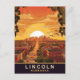 Cartão postal Lincoln. O pôr do sol sobre a cidade em Nebraska. Cartão postal de viagem ilustrado em cores vibrantes.