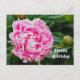 Cartão Postal Linda Foto Floral de Peônia Rosa no Aniversário