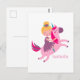 Cartão Postal Linda Menina de Cabelo Amarelo Montada num Unicórn