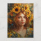 Cartão Postal Linda Mulher com Girassóis