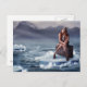 Cartão Postal Linda mulher sentada na mala