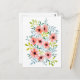 Flores cor-de-água rosa e folhas verdes/azuis ilustram no cartão postal.