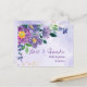 Cartão Postal Lindo Agradecimento de Casamento Floral Azul Roxo