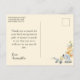 Agradeça à sua família e amigos por comparecerem à Primeira Comunhão de sua filha, enviando a eles um cartão-postal de agradecimento com foto da Primeira Comunhão. Este cartão de agradecimento da Primeira Comunhão apresenta uma bela cruz dourada com uma moldura dourada sobre um fundo amarelo suave de cor creme. Um buquê de belas flores em tons de pêssego e azul em estilo aquarela é colocado em cada canto. Coloque a foto da sua filha na frente e escreva uma mensagem pessoal pré-impressa com uma assinatura no verso para sua conveniência, bem como seu endereço de retorno.